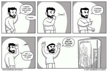Getting along with vending machines is a tricky thing. They are fickle and sometimes just plain dishonest, just taking everything you can give but giving nothing in return. You may have seen or heard that last week’s comic was featured in a post on Beardrevue.com, which I find great because I’m a big fan of the site. It’s a great …