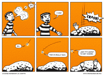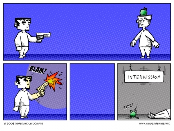 First off: hooray USA for using your common sense. Third time’s a charm. The comic’s a double feature because I didn’t keep up my 2-weekly schedule (I should be flogged, I know). I should note that it’s been compaired to the first 2 seasons of Lost, in the way that nothing seems to be happening. And this double feature is …