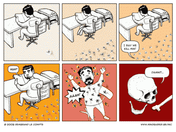 I’m on vacation, free to release my destructive tendencies on others then my co-workers. Now if you’ll excuse me, I shall lay motionless on the ground for the rest of the week. Also, the title of the webcomic will change with every new comic from now on. This is to reflect the sheer insanity that runs my daily life.