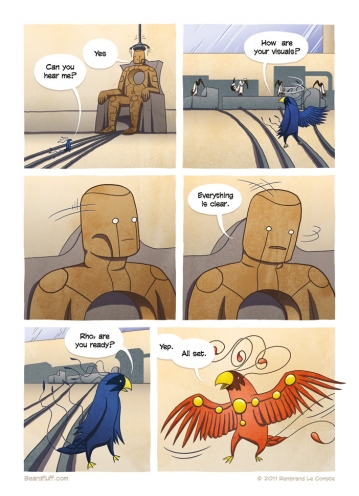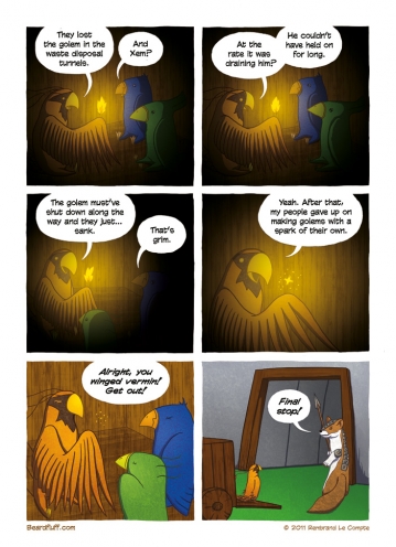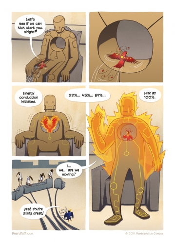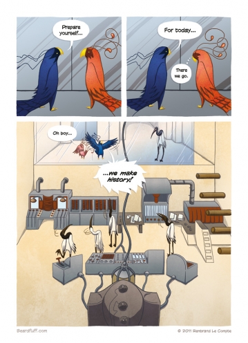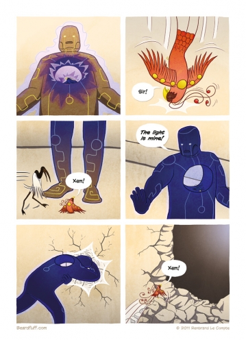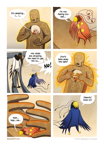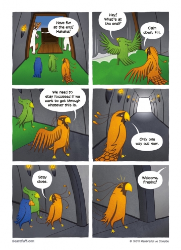 Come back next week for the final page of the second chapter in this firebird story. (By the way, if you’re still on the fence about buying the Beardfluff book, why not check out this excellent review by the folks over at GAFBO). After that, I’m taking a little break to do some writing and prepare for ThoughtBubble. But fear …
