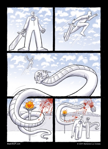 This comic is a bit of fan art for the musical project 8in8. Ben Folds, Amanda Palmer, Neil Gaiman (, and Damian Kulash set out to write and record an album in 8 hours and this is one of my favourite song on it. ‘The Problem with Saints’ is sung by the great Neil Gaiman himself. Listen to the song …