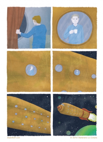 Originally made for a collection of various other artists’ work that didn’t quite make it to publication. But maybe it will in some form or another one day. By which time I’ll probably make a whole new comic for it I think. In any case, it’s my first fully painted comic and it’s also part of Book 2 (still available …