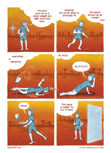 If you hadn’t guessed it, this is what I imagine would happen if a trans-dimensional traveler were to find himself in a comic all of a sudden. Looking at comics objectively, you see it has some very specific natural laws or rules, just like any language really. And as I was trying to show last week, there’s fun ways of …
