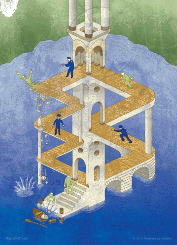 Experimental comic! One thing I love about comics is the manipulation of our perception of time. The act of reading itself (left to right, top to bottom in the Western world) takes us forward in time along a series of events. Pretty straitforward, right? It’s called “sequential art” for a reason. So if I were to start reading backwards, I …