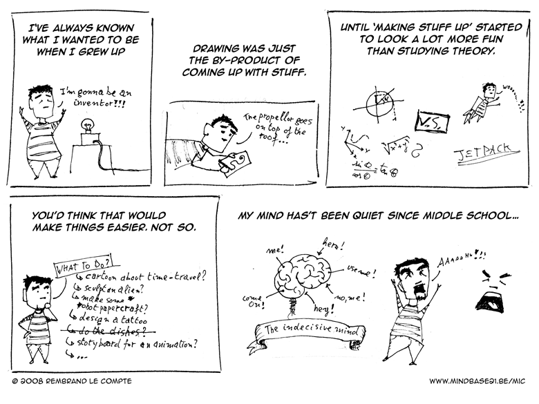 I really like how you switched up your style for this comic. You should always allow for time to work and time to think. Generally I come up with ideas during sleep or while driving, which is why I have a notebook next to my bed and one in my car. Of course, I have other notebooks all over the place, just in case. You never know what your muse will be and when it will come about.