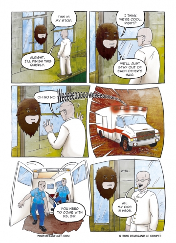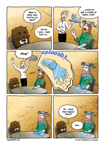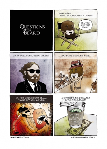 There’s a Formspring for Beardfluff, so go ahead and ask the Beard some more questions. As you already know, I’m on twitter as @LordRembo these days, but you can also just follow the comic over at @Beardfluff. So far it’s just been streaming the updates but Beard has graciously agreed to share more of his beardy outlook on life.