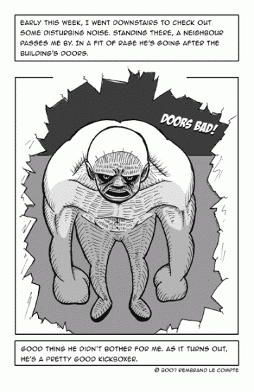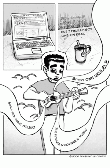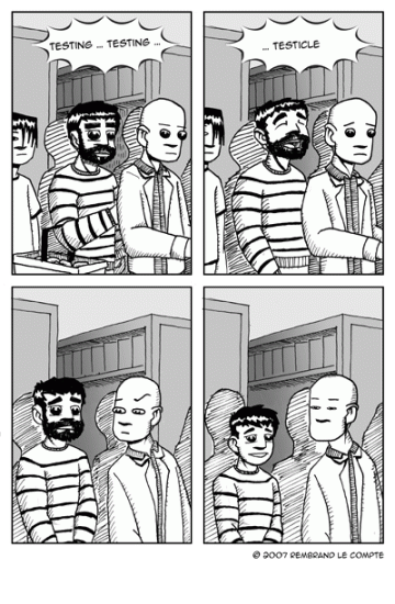 Waiting in line at the checkout, it’s boring as hell. Until someone gets a hold of the microphone. Instant fun! I loved the idea for this comic, but I’m afraid the setting doesn’t come across very clearly. Oh well, draw and learn, right?