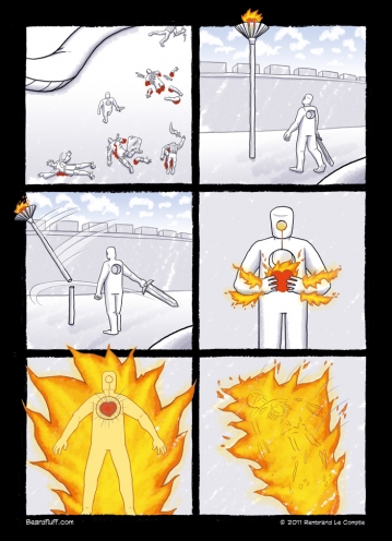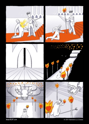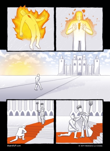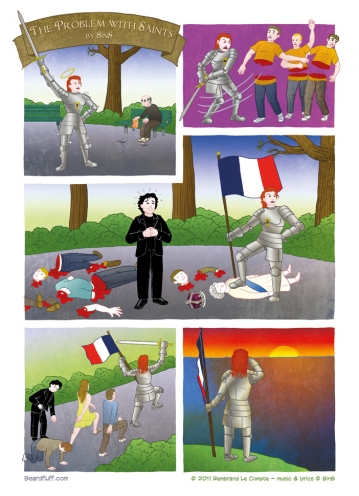 This comic is a bit of fan art for the musical project 8in8. Ben Folds, Amanda Palmer, Neil Gaiman (, and Damian Kulash set out to write and record an album in 8 hours and this is one of my favourite song on it. ‘The Problem with Saints’ is sung by the great Neil Gaiman himself. Listen to the song …
