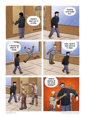 I’ve been asked why I don’t say hi to people I know, when I pass them by on the street. What can I say, I’m just in my own little world when I’m walking. I wouldn’t even notice the zombie apocalypse, let alone someone waving at me. It’s nothing personal. Really.
