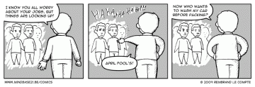 Another 4 people got fired at my job last week. Needless to say, morale is low. So today’s comic is more or less in honour of the colleages and people feeling screwed over or kicked while they’re down. A lot of blame has been assigned already and there’s a lot of anger and frustration, but also sympathy and humour. That …