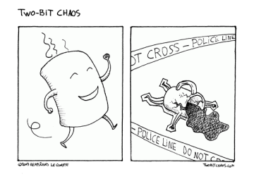 Not really a comic, but fun nonetheless. A classic receipe for cake, originally found on Wired and Vault9 but I modified it a little. Perhaps I should add a few tips as well: don’t cook it for longer than the 3 minutes and if you like experimenting, try different ingredients and shapes for the mug.