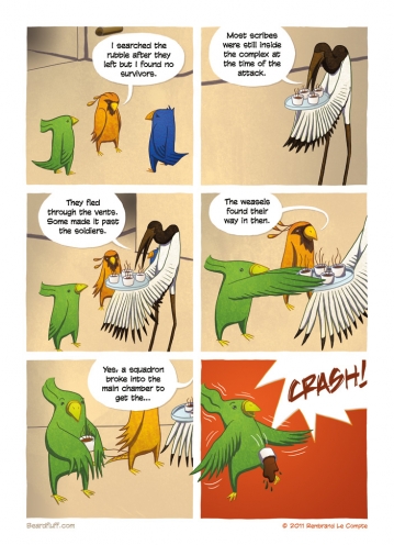 Come back next week for the final page of the second chapter in this firebird story. (By the way, if you’re still on the fence about buying the Beardfluff book, why not check out this excellent review by the folks over at GAFBO). After that, I’m taking a little break to do some writing and prepare for ThoughtBubble. But fear …